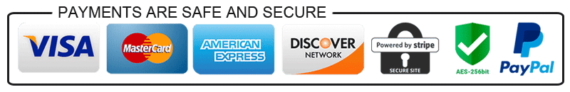 We accept Visa, Mastercard, American Express, Discover, Apple Pay and PayPal. -