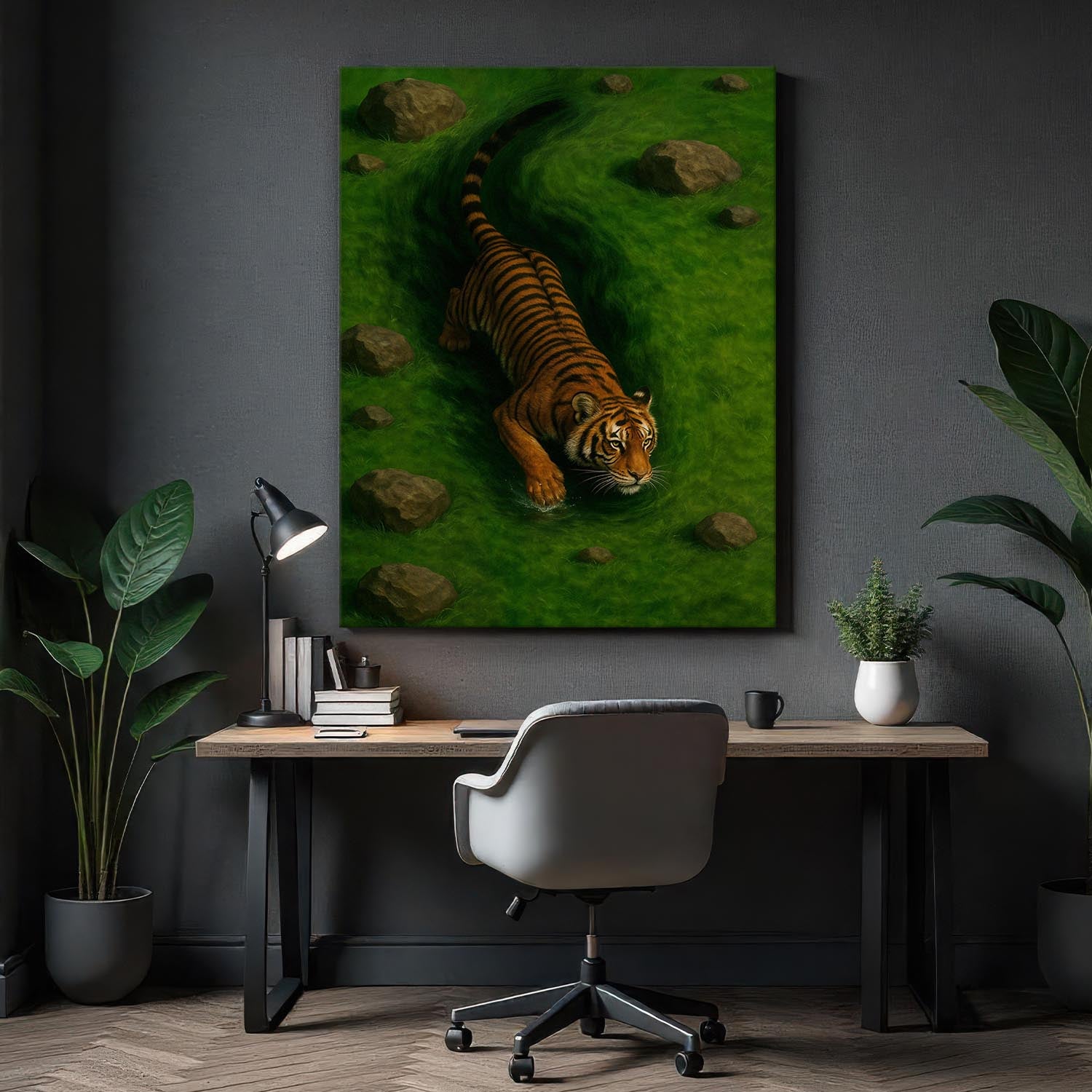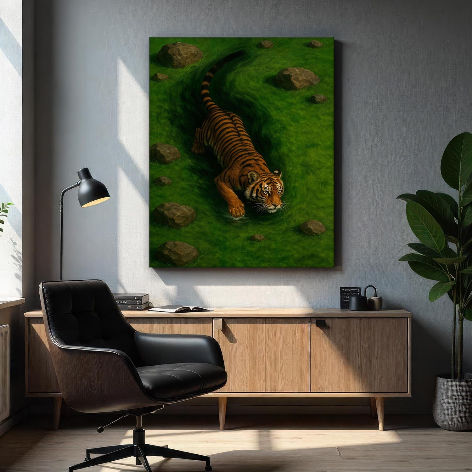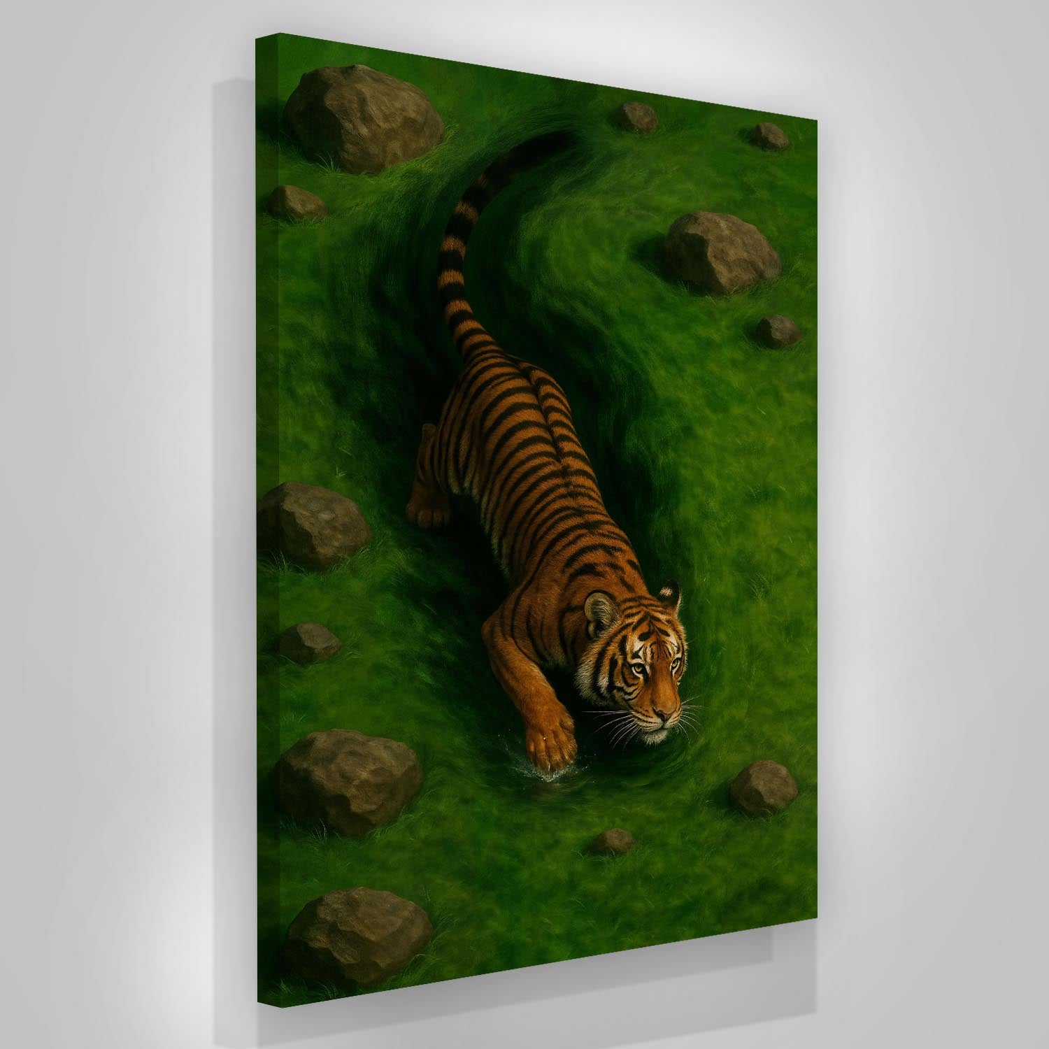 Our canvas framed with a wooden frame and ready to hang out of the box with hanging hardware pre-installed