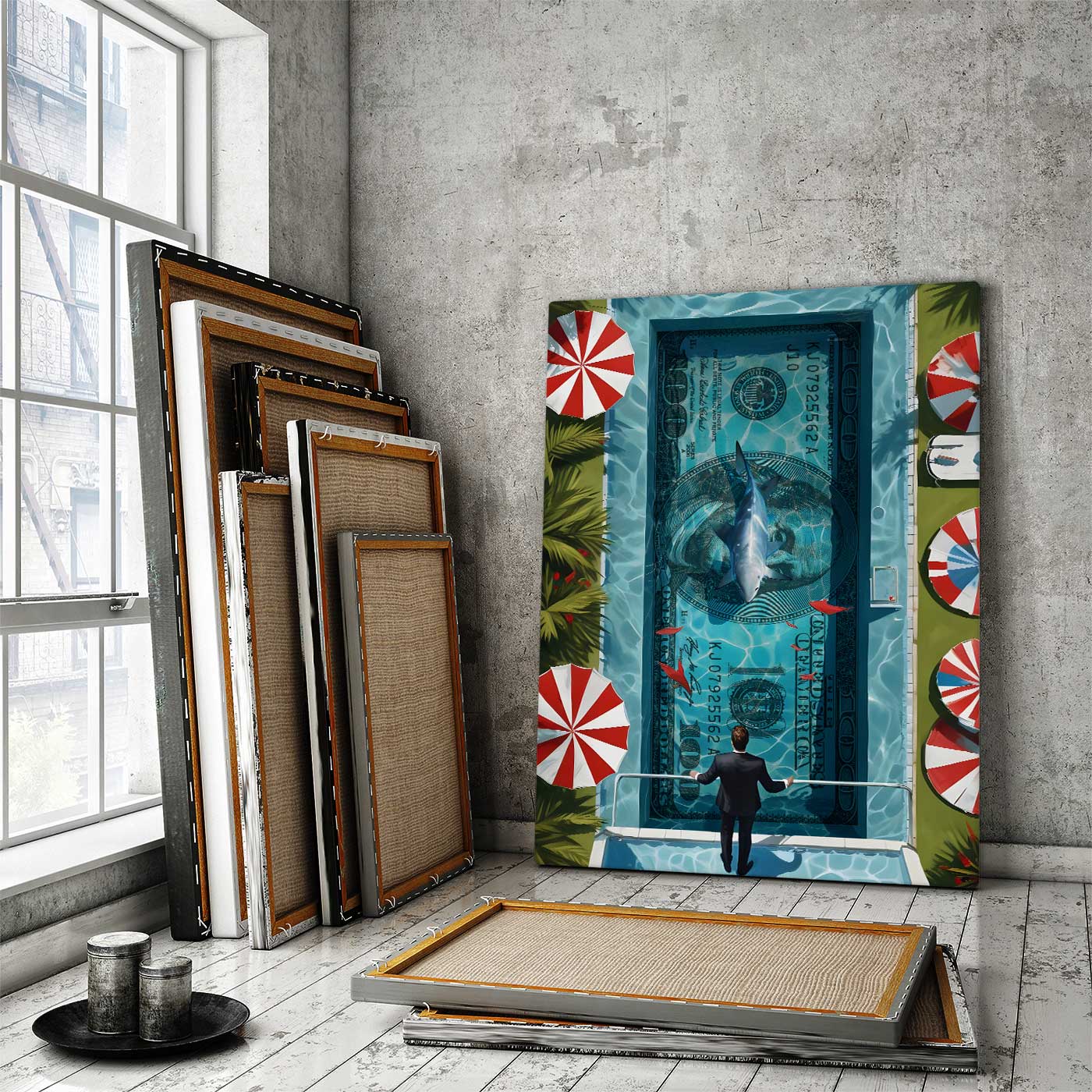 Our canvas framed with a wooden frame and ready to hang out of the box with hanging hardware pre-installed